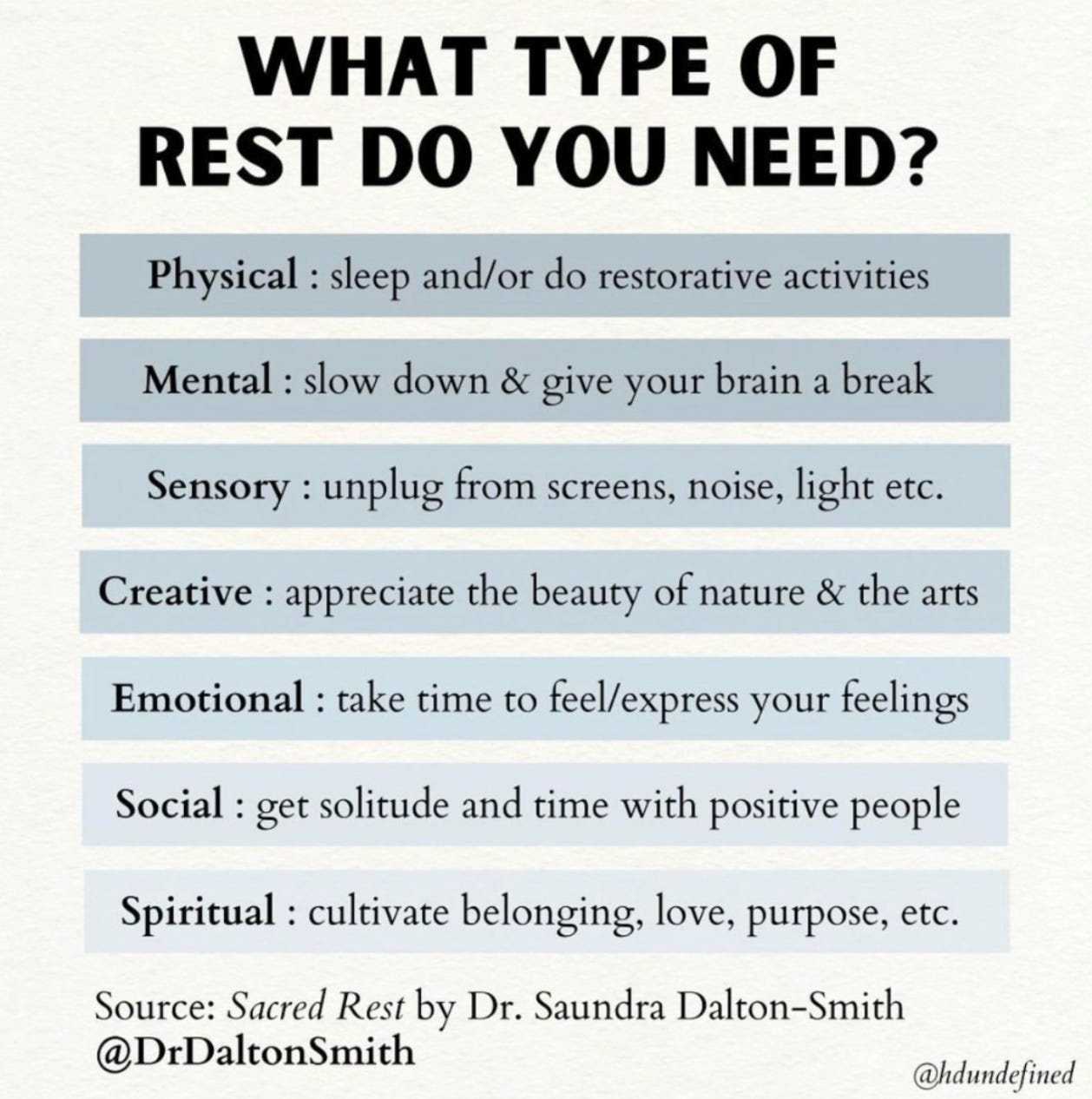 🚩 Red flag you need this: “If you’re constantly saying ‘I’m so tired,’ or you feel physically heavy and achy even though you’re not sick, you need physical rest.”