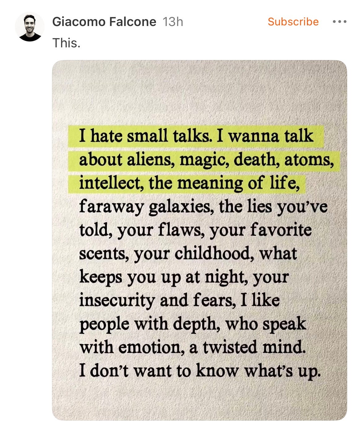 It can feel like a waste of time -let’s get to the good stuff already! Enough with the surface-level!